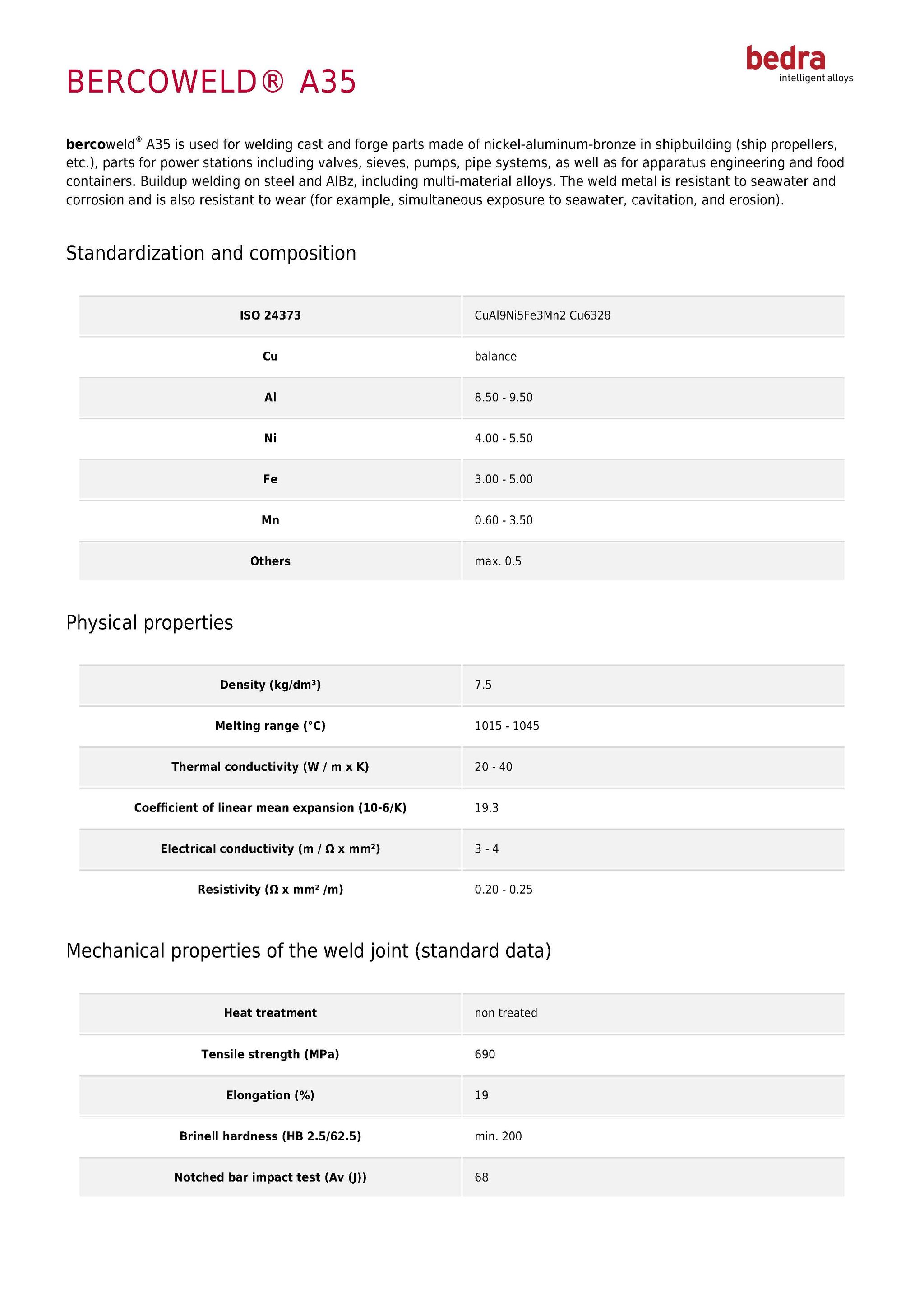 bercoweld A35(CuAl9Ni5Fe3Mn2)